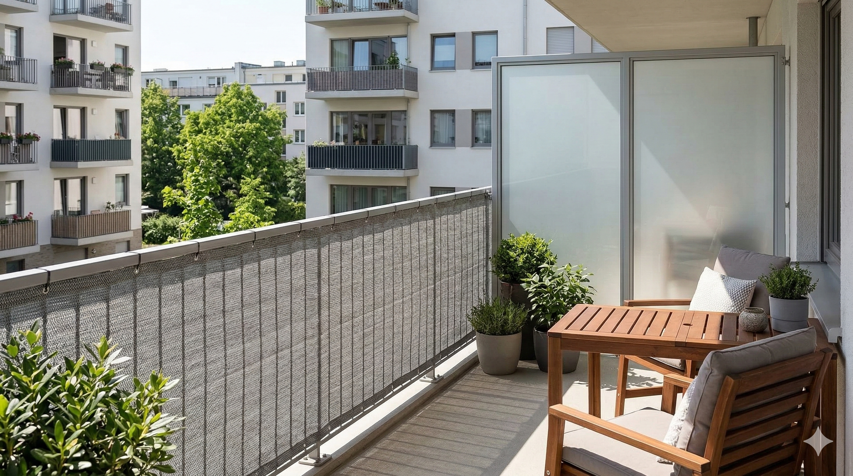 - Wooden screens: These offer maximum privacy and a robust look. However, on a balcony, they are often heavy and difficult to attach to an existing metal railing without damaging it.